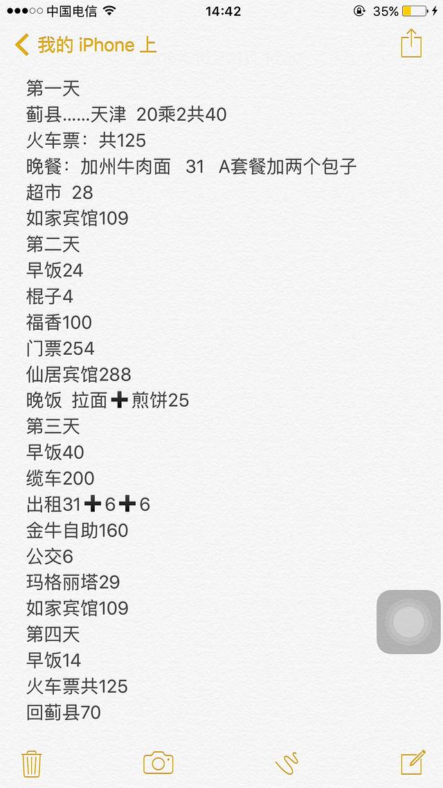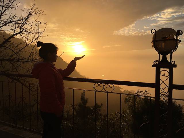 这个季节衣服带了一个小棉裤,运动裤,半截袖,毛衫,薄羽绒服,山顶上晚上冷都穿上就好了,由于带了羽绒服,妈妈我俩没租大衣都不会冷。