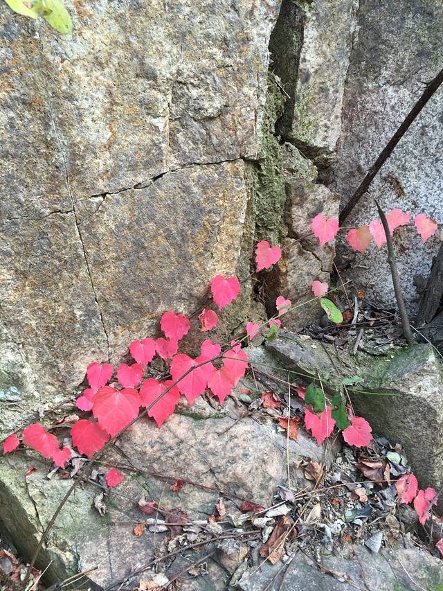 这条路车也从这走,人特别少,喜欢这种红色的爬山虎。