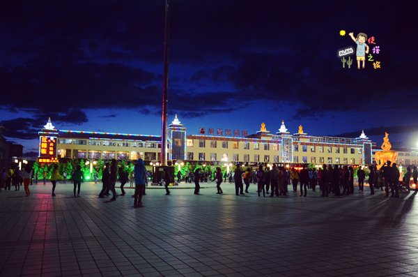 在刚察,格格在广场跳广场舞,而我是看他发呆。今晚,我们住了一间一路上条件最好的家庭旅馆,好好的睡上一觉。