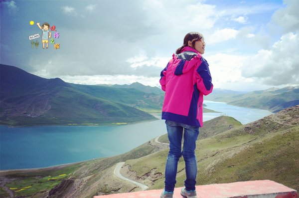 这是搭我的妹子,偷拍的背影,从北京来的,第一天到拉萨就来纳木错。顺便搭了我一程。一路上,我教她摄影参数,教了好久好久。