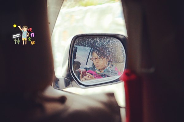 卿婉,一路上都是不喜欢拍照,在搭的车上,偷偷的拍张。
