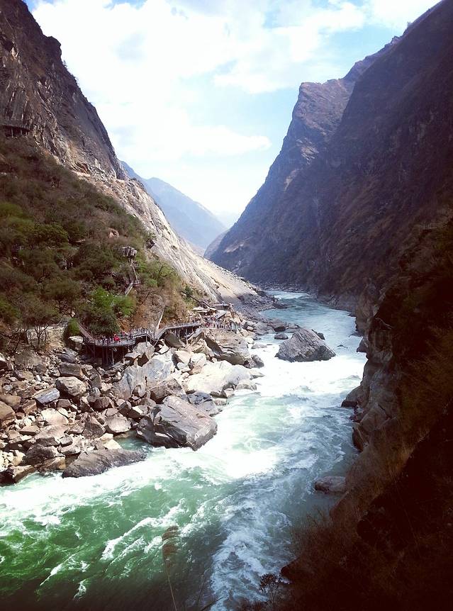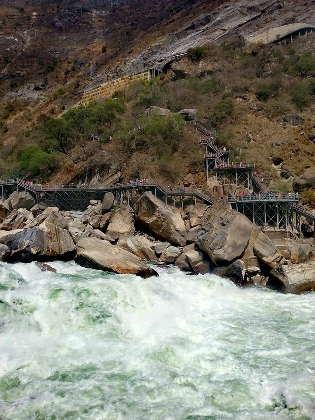站在岸边,眼前奔涌的江水令人望而生畏。这藏身荒野中的壮观美景,远比其他名山大川更能摄魂勾魄。山风阵阵,身处峡谷之下,仿佛老虎刚从这里跳过,只留下呼啸之声,远荡山谷!