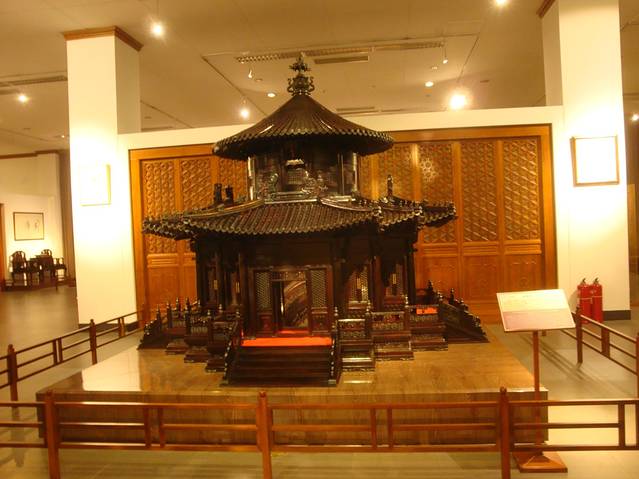 进大厅,眼前是一片金碧辉煌,皇帝的金銮宝座为大厅增色不少也使得展馆富丽堂皇。博物馆一共四层,每层又分为东、西、中三个展厅,分别有不同的主题。