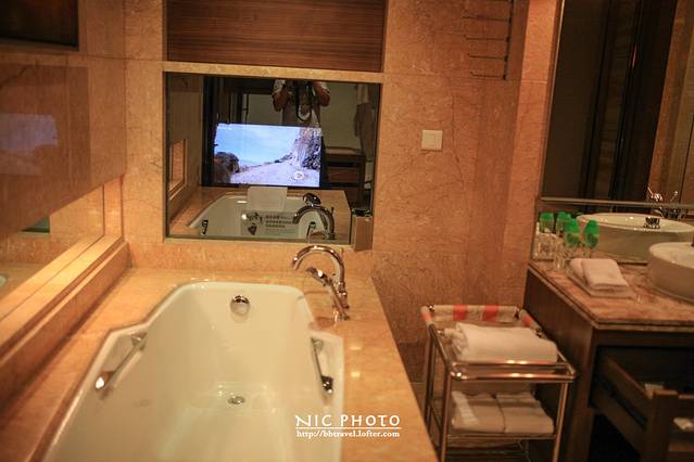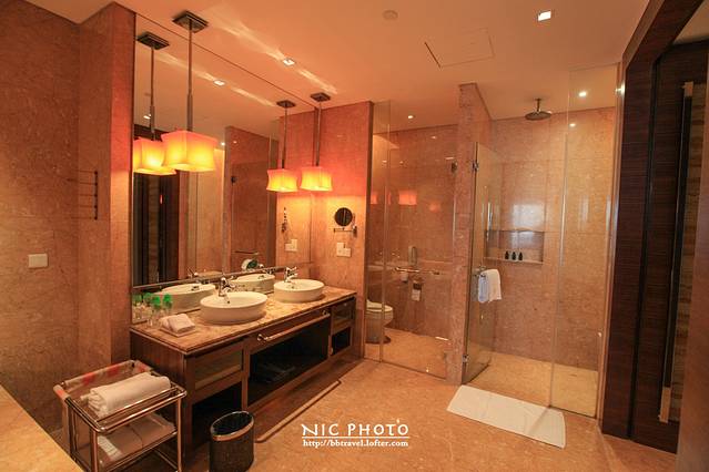 房间的总面积差不多接近80平米,加上设计师巧妙的设计了几面镜子的反光效果,让整个房间在感观上,至少又大了一倍。作为东莞地标性的建筑,很幸运能住在31楼的无敌景观房。