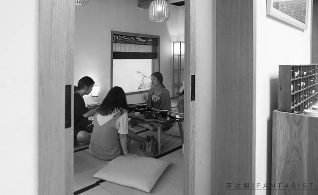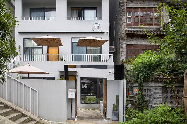 这是一家三层楼的小民宿。老板夫妇跟我们一样是八零后,和隔壁的古宅相对比下,它并没有多么鲜明的个性。白墙木门,日式榻榻米配上一瓶虎跑泉,很简单,真的简单得有些意外
