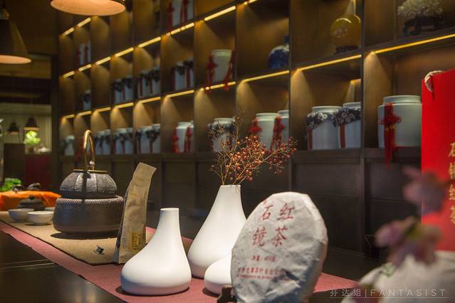 一目了然,在厅内陈列着各式各样的茶叶,种类几十种。正厅中间的茶几上陈列着几款精美的茶礼、茶具。