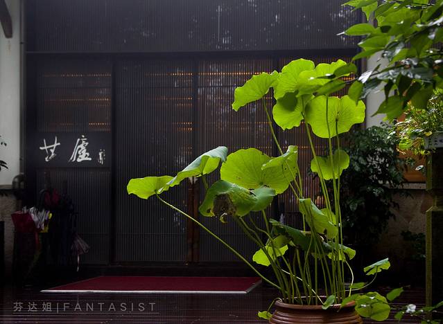 座落于群山包笼的天籁,竹木掩映,并没有人想到这里居然会有一家餐厅。拾阶而上,抬头看见曲径浮香木匾。走进甘庐餐厅,处处都可以发现自然与人文设计的巧思。古典的建筑品味,呈现空间的环山感受,后来一问才得知原来是国内著名设计师沈雷操刀,依山而建,在顺势利用山体走向的同时也将室内空间完美地分隔与布局。轻轻推门而入,展开在眼前的摆设和室内结构更是流露出一种宁静致远的氛围,似乎这是旅人登上龙井山后柳暗花明的意外惊喜。