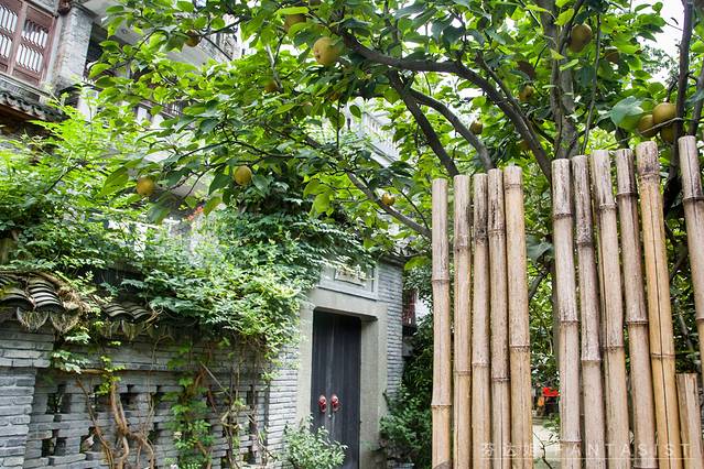 隔壁的古宅看上去也很有意思,灰砖砌的外壁,果树竹栏包围着院子。听说主人是位老奶奶。