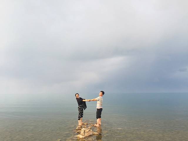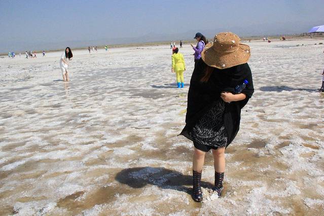 茶卡盐湖到处都是大白盐粒,如果不租一双雨鞋,怕走不到最里面最美的地方。