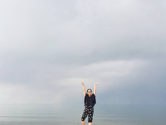 在微信朋友圈里分享说——沙粒柔软细腻包裹着身体,只想做一颗星星。