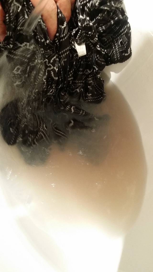 晚饭后周先森帮我洗衣服时喊我去看,天呀,洗了四遍衣服还是这样黄土土的。