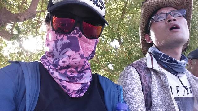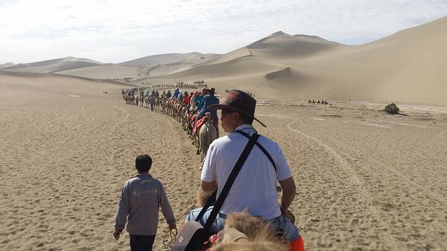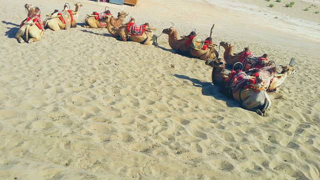 骆驼队的人很会做生意,会把认识的两个人分开,故意不让我们坐前后,省得可以相互拍照,而我们总想留点纪念,就得花20块钱买他们给拍的照片,所以应该要聪明点,装不认识才能坐在前后喔!