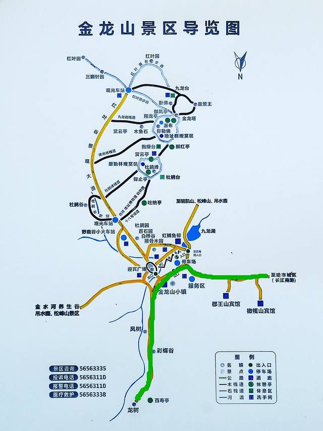 每次来金龙山,我们都不进景区的,过停车场,顺着导览图上的绿线往龙凤树方向去,这边不仅免费,还允许自驾车进入,是一个不花钱也能玩的很好的地方。