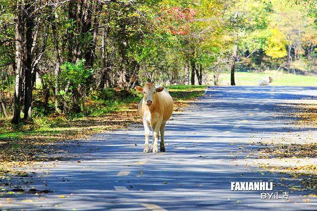 偶遇拦路牛,看到车也不怕,仍然慢悠悠的蝺蝺独行,正好给了我拍照的时间。虽然也在近距离见到过牛,但在如此美景中看到它又是别种滋味。