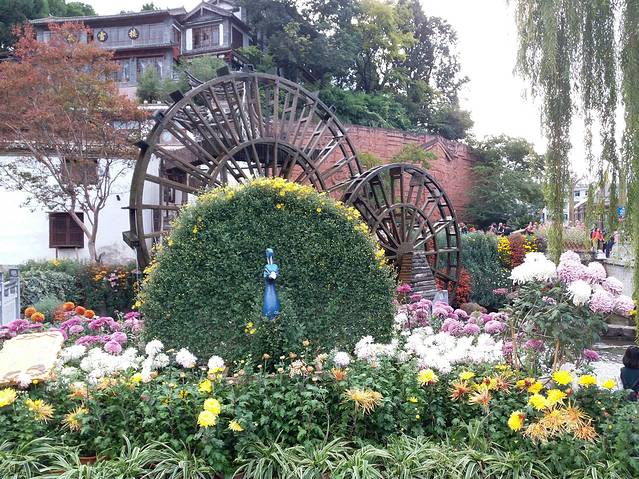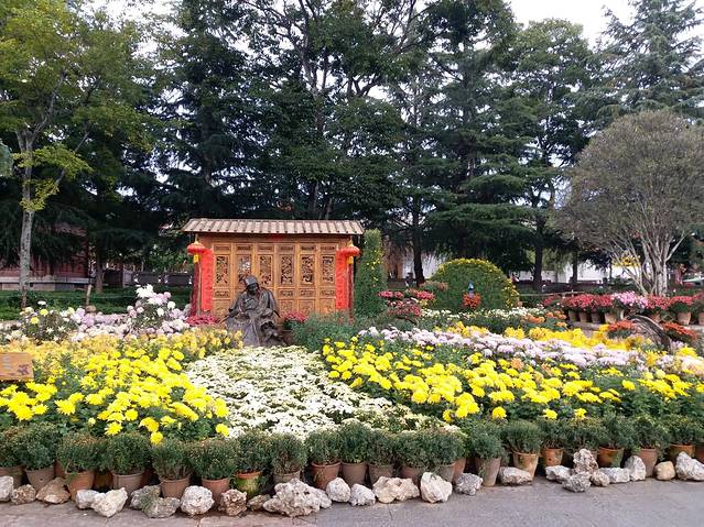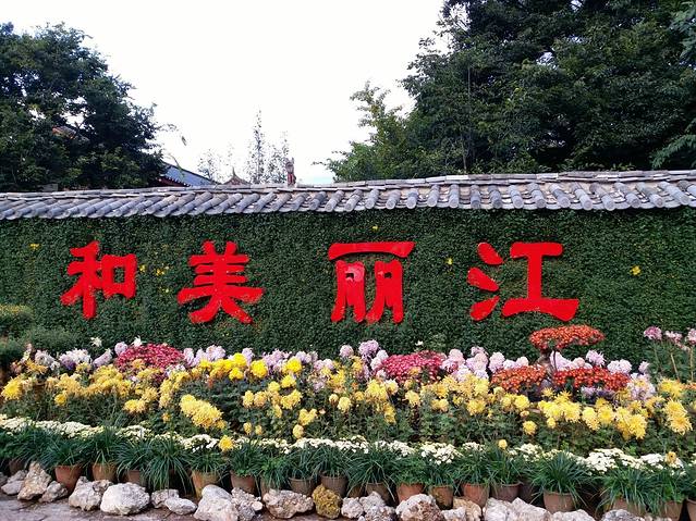 晚上打算到丽江也就是大研古城去看看,为什么要晚上去呢?因为晚上那些查票的人下班了,才不用交古维费。到的时间早了点点,我们就在附近逛了逛,菊花开得真的美妙。