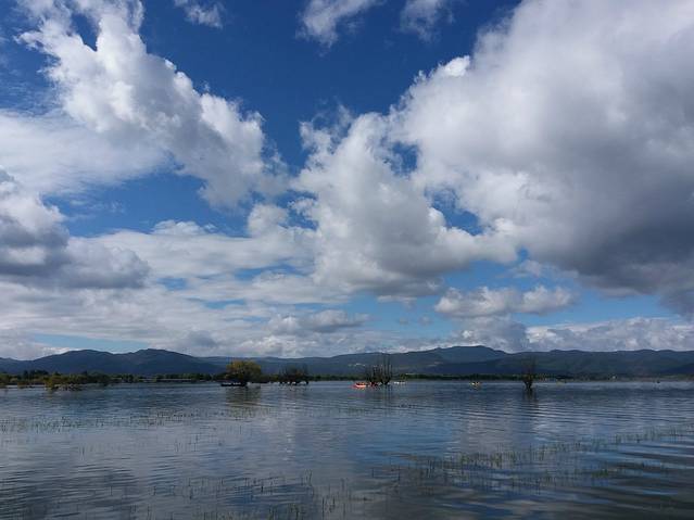 早上九点,临时在去哪儿网团购了两张拉市海的团票,78一个人,划船、骑马,包接送和一顿午饭。风景不错,就是被周围马场垄断,感觉太过商业化。