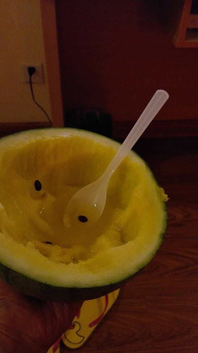 吃饱喝足提溜个西瓜回酒店一人一半啃了~超甜,生活太美好