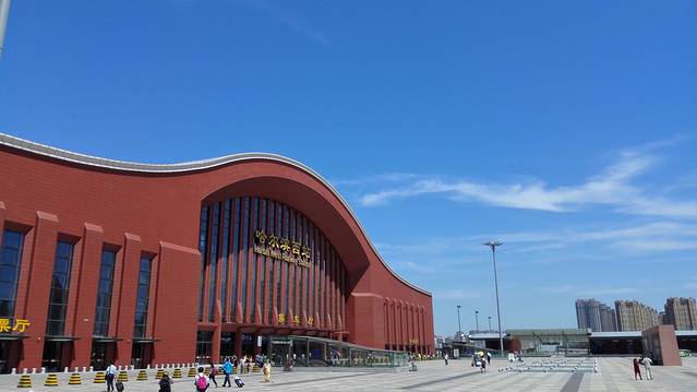 一大早就退房出门坐动车~天很蓝,再次感叹一下住的酒店地理位置真好,走到街边上就有直达车hhh~哈尔滨再见~