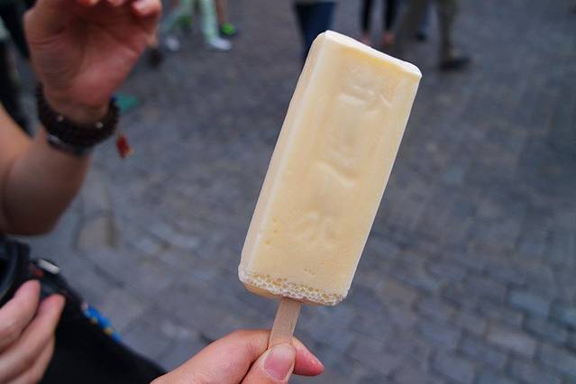 不过来这里当然要尝尝有名的马迭尔冰棍了,于是我们也英勇的加入排队大军,装在大箱子里3元一根的冰棍,原以为是雪糕,结果吃起来却是有点像刨冰那种脆脆的味道还不错~