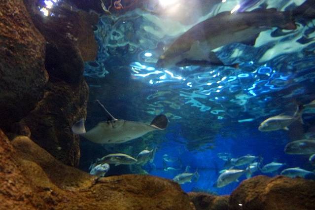 馆内展出的各种鱼类还有极地动物种类也很丰富,不过四个场馆是独立开来的,逛完一个就出来再进另一个场馆,每个馆只能进入一次,并且每次进馆都需要验票所以票据一定要收好!当天去的时候是逢正点有表演,也包含在套票里面的,进入馆内之后就只要跟着人潮一起往前走,墙上也有标示说表演场地怎么走,但进去的游客都是单向游览,所以人多但不乱。重点是,人真的非常多!尤其是看表演的人,去晚了基本连个站的地方都没有……