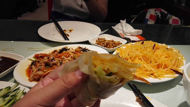 晚餐在中央大街的老昌春饼店解决,强烈推荐ing!!真的太好吃了筋饼很Q,皮薄而不破,鱼香肉丝和土豆丝十分入味,还点了两碗很清口的‘二米粥’,瞬间一扫而光啊,那味道到现在想起来都要流口水了(¯﹃¯)筋饼是按对卖的,一对两张,一个人差不多两三对吧~