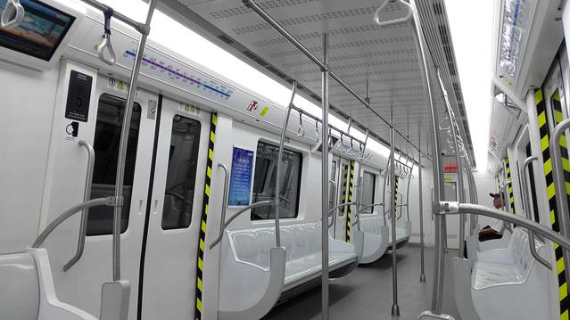 去金石滩选择的是坐金石滩轻轨3号线,就像地面上的地铁一样,进站里先买票然后等车,我们住的汉庭离站点只要搭乘两站公交车,下车过条马路就是了。