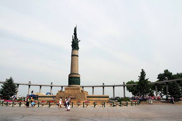 第二天一早在酒店吃完早餐就出发去太阳岛啦,从我们住的地方步行十分钟就能到防洪纪念塔斯大林公园,这俩其实就是在一个大广场上的。