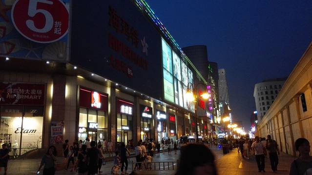 人头攒动的滨江道商业街,真的很繁华,周边都是些大型的商场到天津已经是晚上六点多了,放了行李打车到滨江道已快八点,可这里依旧是人来人往繁华不减啊~照片都拍糊了…