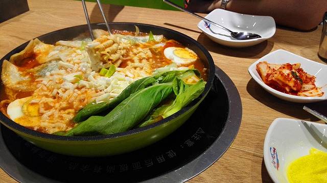 晚餐在人民广场的一家韩国年糕火锅店解决的,就在百盛的地下一层,点了芝士和部队双拼版,味道超级赞啊,一份套餐里还有送饭团啊泡菜啊炸饼什么的,绝对管饱,貌似老板就是个韩国人思密达哟我和老妈都吃撑了才花了80米子,有路过的亲们可以去试试看~~