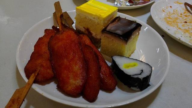 里面的东西很丰富,蛋糕啊寿司啊烤肉啊啥都有,感觉材料也都还蛮新鲜,还有很多师傅在现炸一些糕点吃货表示真的太满足了,回到家还是心心念念那里啊~