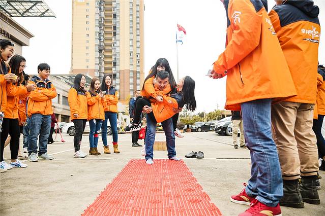 惩罚规则是三人两只脚!!我真的很佩服我们辛勤的工作人员啊!~~~这也想的出来???