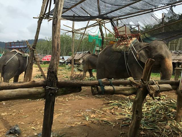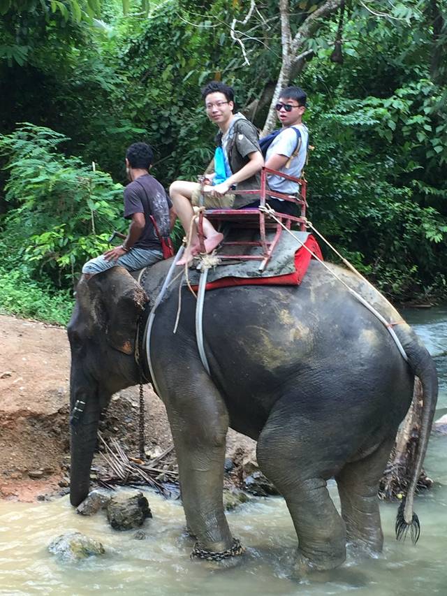 在酒店大堂打盹打盹打盹,好不容易check in了睡到12点出去找近的店吃了个传说中非常好吃的芒果糯米饭(感觉不咋滴)就集中出发骑大象,车子直接来到酒店门口接我们,开车大概15分钟,直奔象园,也就是一个不大的私人景点,骑大象感觉很好玩也很刺激,不过带小朋友的家长注意了,一定要扶好自家的小朋友,大象走的路是十分崎岖的,楼主坐着都感觉心慌,双手死死把住栏杆!!