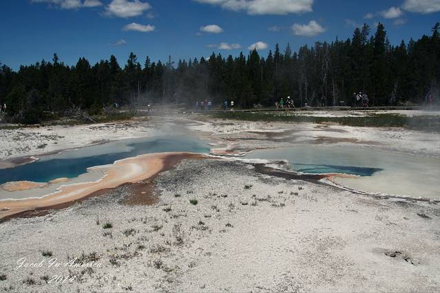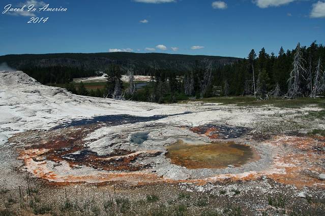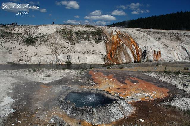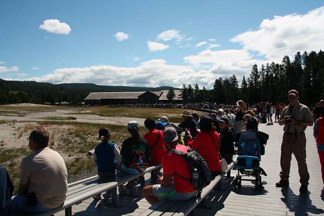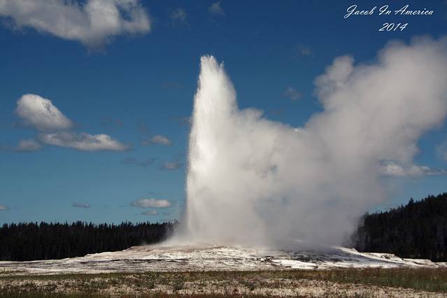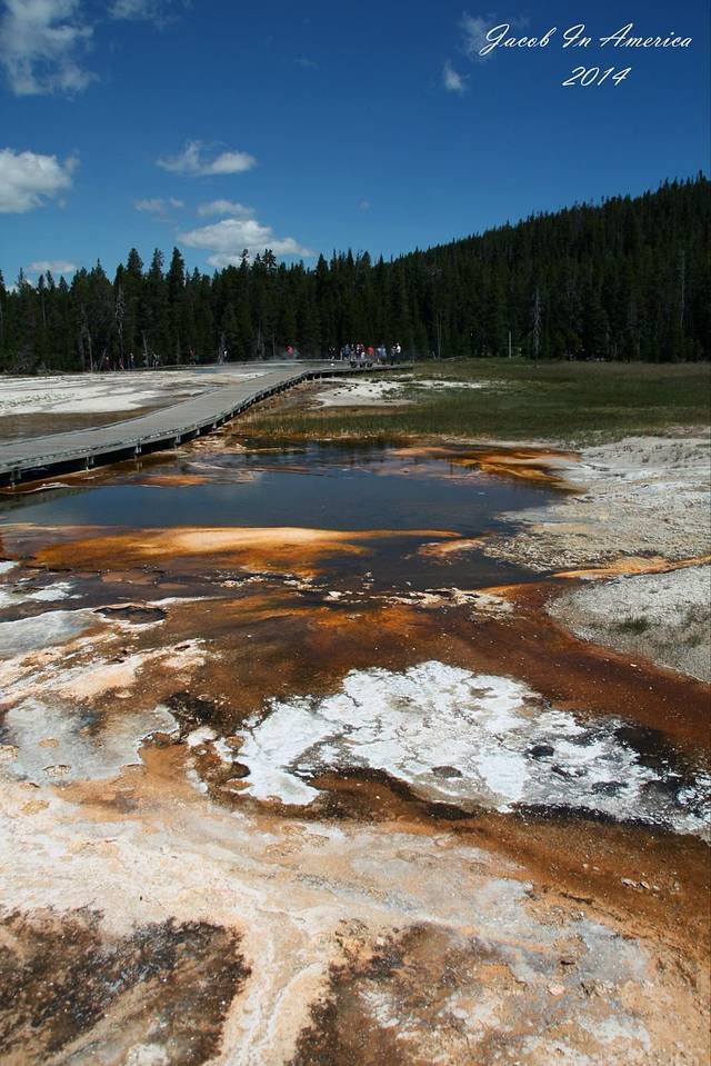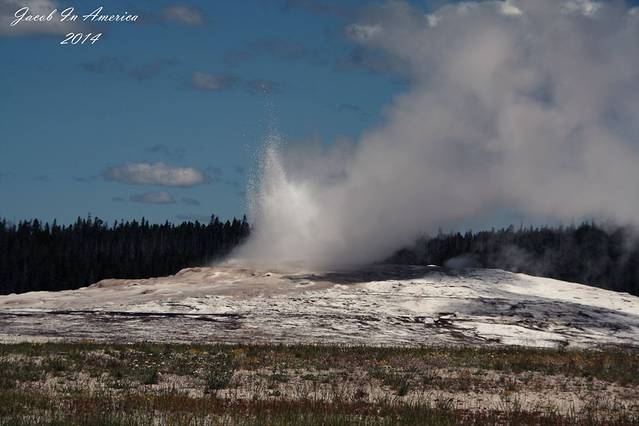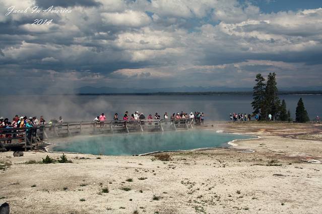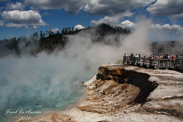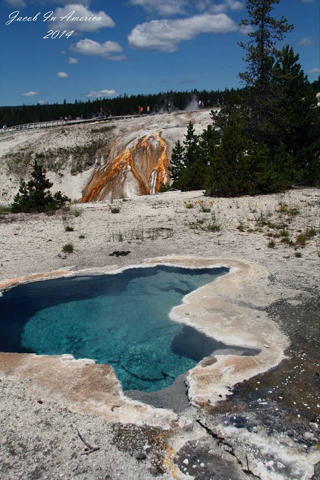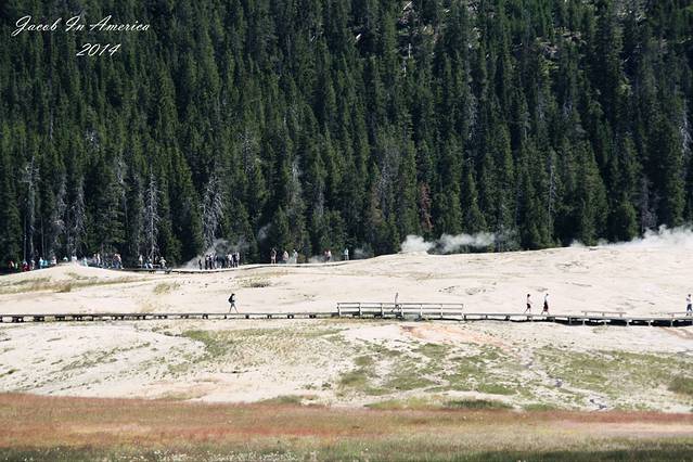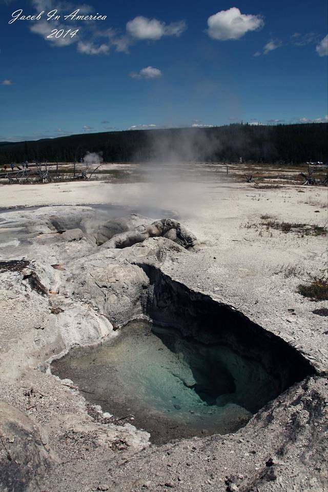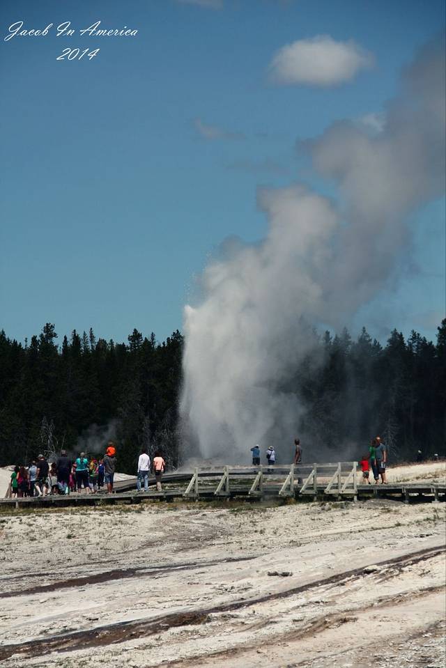 黄石的喷泉数老忠实最著名了,但其实喷得最高的并不是她,可能是因为她比较准时不会让游客失望吧!所以等待的人也最多。试想一个不定期喷发的世纪喷泉,哪位游客可以在这里无限期的等待呢?