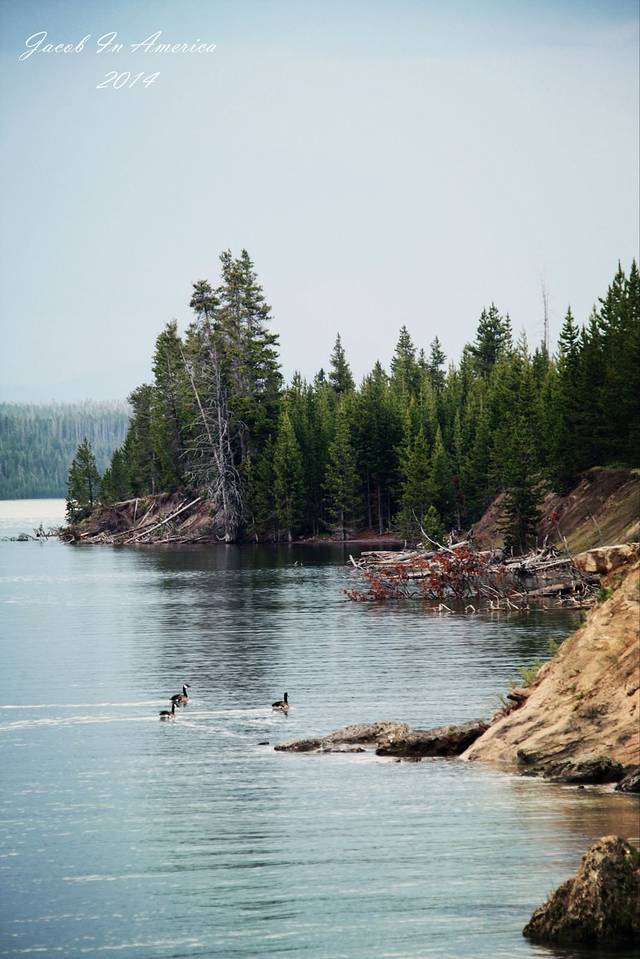 穿过大提顿就是黄石的南门了,最佳的方式也就是走黄石西面的湖区住下,看看黄石湖的日落。