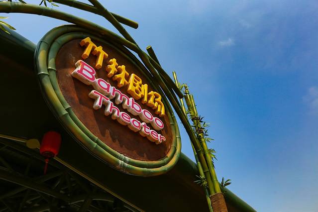 入口处的“竹林剧场”,讲的是一个森林的爱情故事,以自然元素“竹”为主题,结合了杂技,舞蹈,跑酷等项目。刚到乐园的我们当时正好天气很晒很热,坐着边看演出,边休息乘凉。在魔幻的水舞效果中,看完了一场有童趣的爱情表演。