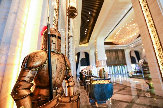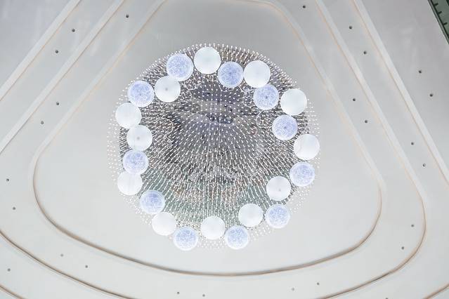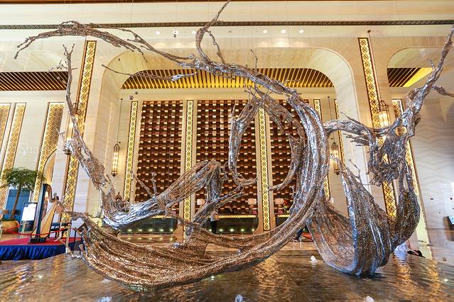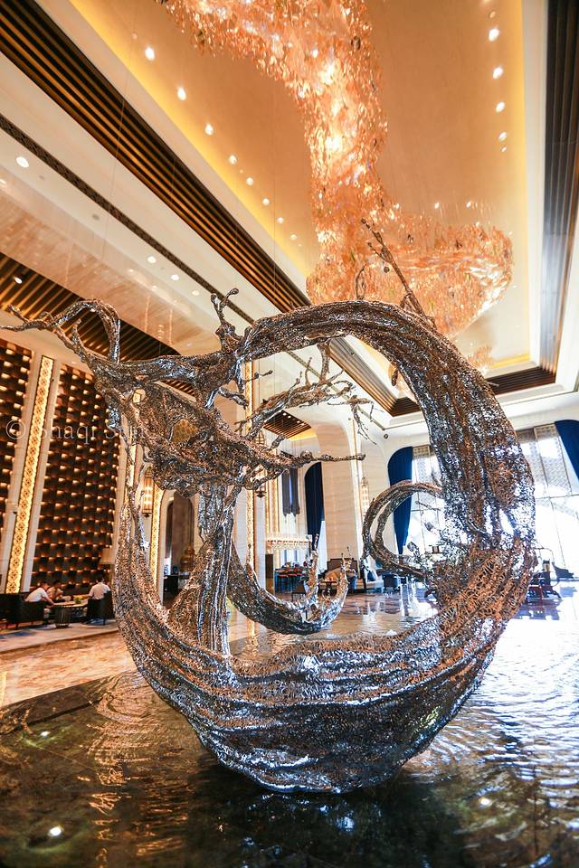 大堂:到大堂的第一感受,是华丽。金灿灿,银闪闪。经过工作人员介绍,才知道那个抽象银色雕塑大有深意,上面由一个个汉字拼凑而成,融入了江西的文华元素建设而成的。其实,万达除了大家印象中的“豪”以外,在文华内涵的建设和丰富上,也花了很多的心思。