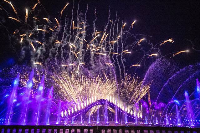 欣赏一场浪漫的烟花灯光水秀表演: