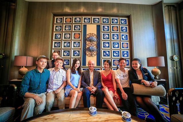 我们也忍不住在瓷盘装饰前的沙发上合影留念一张。坐中间的,就是南昌万达的总经理,是高薪聘请过来的埃及人。