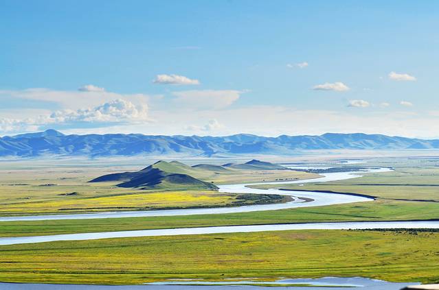 从若尔盖到黄河第一湾的景色很漂亮,比花湖那一趟美丽好多,而且,阳光很好,觉得草原配上大晴天才美