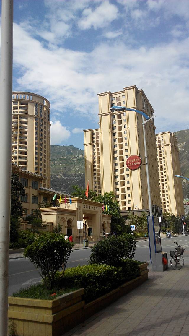 不过,不知道是不是因为我们走了老路,还是咋地,走了好久好久都没有车子停下,无奈,中途,我们坐了大巴到了汶川。现在就是给我的感觉就是很新的重生哈~这个就是当年广东筹建的小学,我们三看到都觉得,好豪华,啧啧~