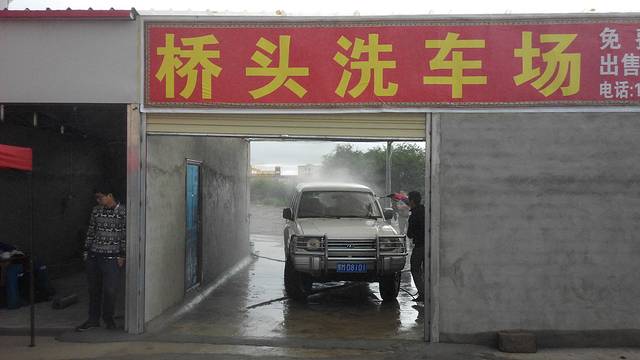 因为下雨,我们一下车就躲进了这个洗车店,然后老板看我们冻得慌,就让我进去烤火
