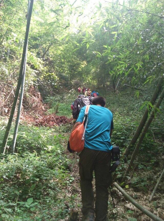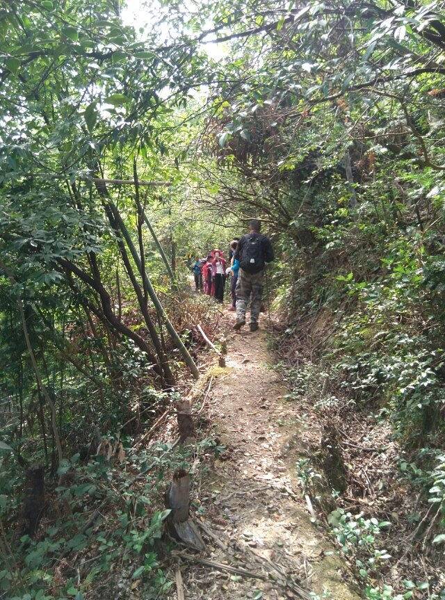 我们在荆棘从生的密林中不知攀爬了多长的时间,终于遇到了一条简易的小路,我们沿着这条小路继续向山顶进发!