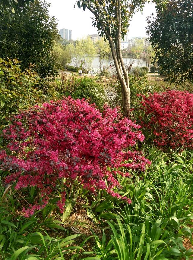 从人民广场出来,我们意犹未尽。于是乘着游兴来到了与人民广场一河之隔的十六潭公园。此时的十六潭公园也是处处鲜花,风光无限。选择在此时出游,我们正好享受到了一场鲜花盛宴!