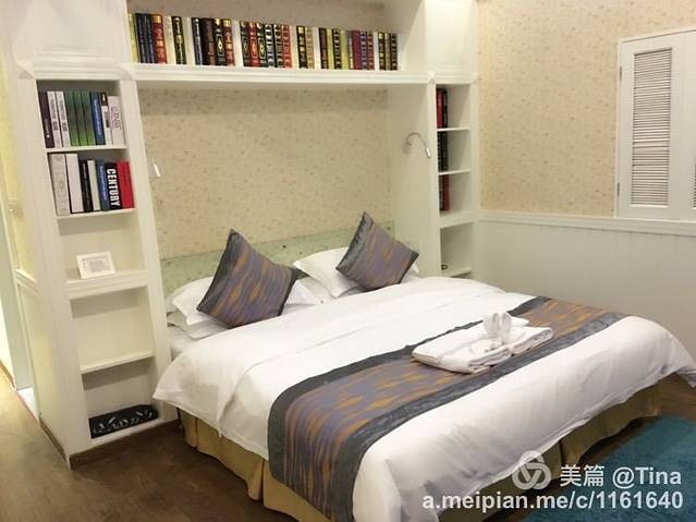 客栈老板娘知道我晚上睡觉前有看书的习惯,第二天给我换了一间家庭房,床头上书柜里摆放着各种各样的书。