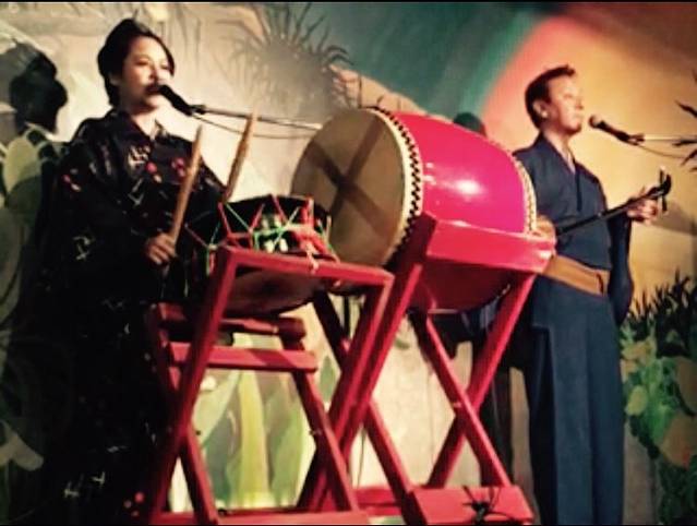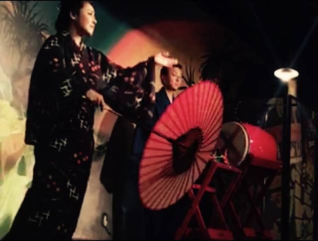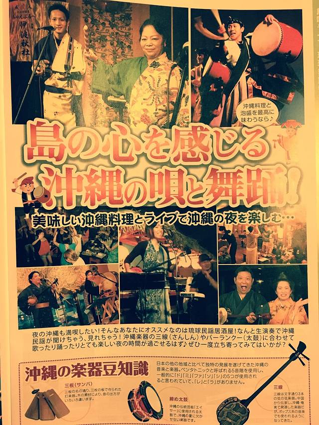 旭桥站离国际通不远,步行5--10分钟,国际通好像忘记照相了,哈哈。晚饭XXX选在波照间,到那儿正好赶上八点半的演出,XXX的功课做的不错,哈哈。一直很喜欢日本传统文化和地方特色民乐,这家很不错。小视频截图,不太清楚