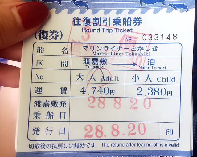 从酒店走到那霸港口一点几公里,提前通过官网上的电话预定的船票,前面出行准备中有链接🔗,也可传真预约。到了收付口告知姓名电话即可取票。去渡嘉敷岛的船🚢分为快船和慢船,快船35分钟,慢船一个小时多一点,预定的时候只有快船了,往返船票每人四千多日元,下午一点发船,五点半返航。有不少人上午十点去,下午返程,时间会更充裕一些。也可以在小岛上住一晚,