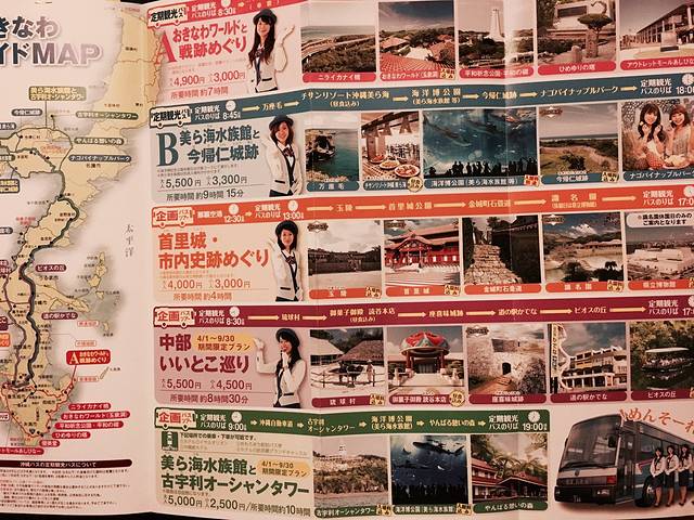 提前预定好的冲绳bus一日游,万座毛…海游馆…今归仁遗址,08:10准时出发,美女姐姐在前厅等待,车上就我们一组人,其他人都直接去的bus总站。费用是在bus总站支付,这个行程不包括海游馆的门票,在总站和便利店购买价格一样,原价打九折好像是,车上只有我们和广州母子四人为外国人。导游姐姐很可爱,相机有拍照声音没好意思照,行驶中介绍经由地点历史背景。