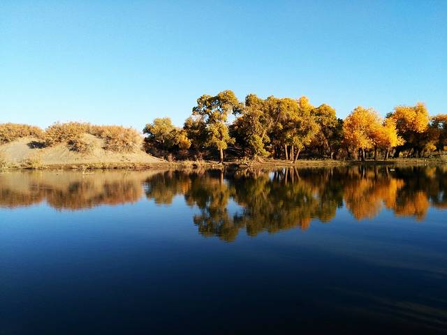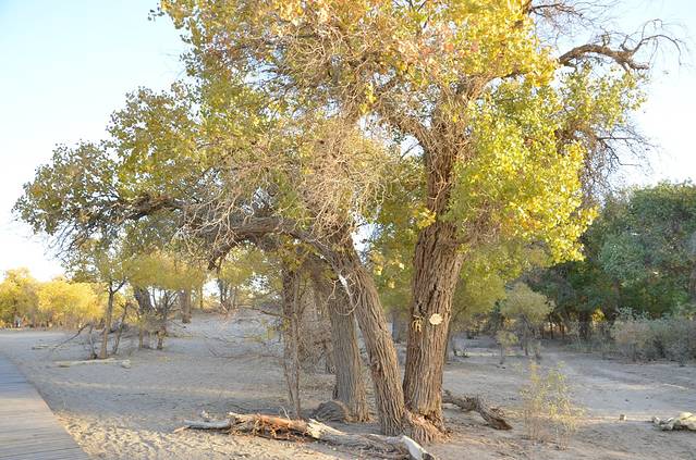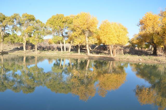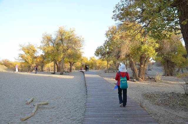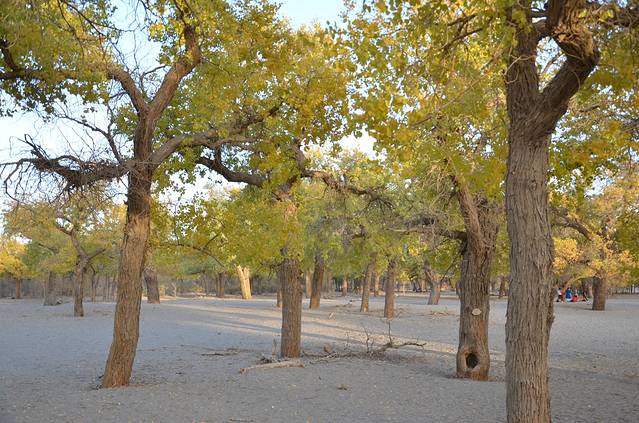 早晨5点起床,在旅馆吃了早餐,乘车到胡杨林景区门口6点多,进去景区门7点钟,天不亮。晚上7点出景区。门票220元。建议:先看二道区、三道桥、四道桥。二道桥步行到三道桥四道桥最好,不要坐游览车。中午12点到了四道桥,吃了自带午餐(三道桥中间平台有卖吃的),观光后坐游览车到八道桥观光,回来坐车到七道桥下车参观,然后再坐车到二道桥,从二道桥步行到一道桥路线是:经湖心岛--倒影林---怪树林、恋影林(景观林),由于路标字很小,很多人没有看到该景观,很遗憾。18点50分出来景区,一天的观光结束!到达来呼布镇吃了晚饭。