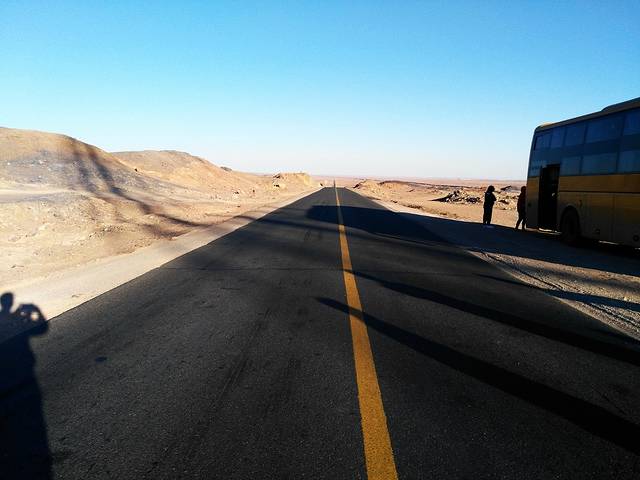 在丹巴吉林沙漠s312公路一天,中午在沙漠公路边吃午饭,晚上7点到额济纳期达来呼布镇