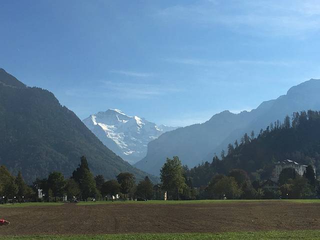 小镇的草坪上可以看见少女峰~!全年冰雪覆盖~!!